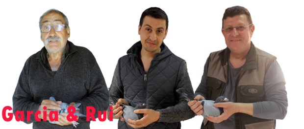 Manuel Garcia com 70 primaveras continua cheio de energia, mas a audição comprometida, Cristiano Garcia rapaz novo com 30 anos na flor da idade que foi pai recentemente e o Rui, homem de 49 anos. O Rui era um bom amigo de longa data, que já tinha tido pombos em outros anos com outros colegas, mas entretanto tinha deixado o activo, separou-se na altura dos sócios e quando começou novamente a mexer com pombos, o Cristiano tinha por hábito visitá-lo, acabou por convidá-lo a fazer parte desta equipa, há 4 anos atrás junta-se então a Cristiano e Manuel Garcia. Assim foi a historia da formação desta equipa de sucesso, que concorre no distrito de Lisboa.