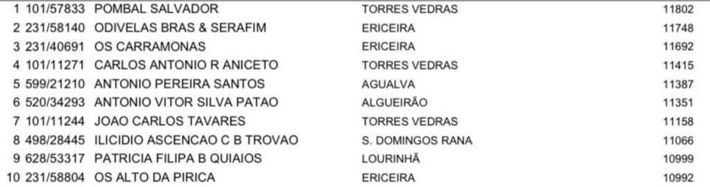 | 5 | 24222 | ANTONIO PEDRO MARTINS OLIVEIRA | 683 |