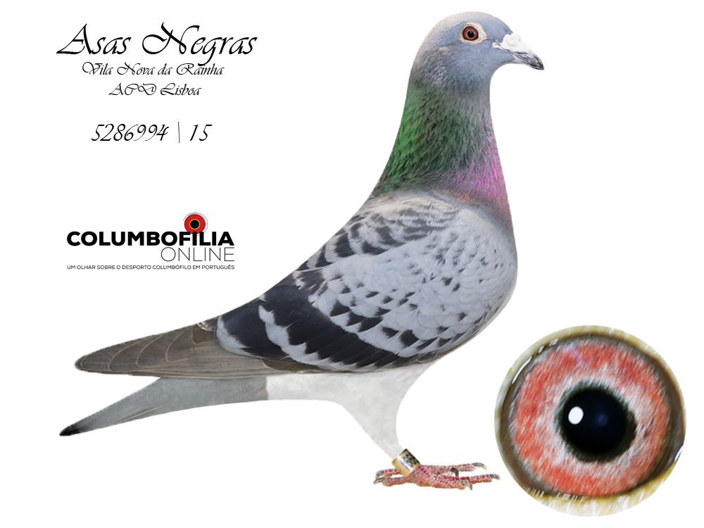 Apresentamos agora o pai da campeã: um macho adquirido na venda final do derby do Riachos, um pombo oriundo da equipa Sporting Team, da linha Van Reth, por sinal um atleta que até foi adquirido por uma quantia bem abaixo do expectável por vários motivos, por um lado a qualidade do pombo, depois por todo o historial da equipa que o colocou no derby e por fim o nível do pombal de onde este é oriundo… mas há horas e dias de sorte, foram muito bem empregues estes 30 euros. Um macho colossal em mãos e pelas classificações dos filhos um excelente reprodutor. Varias filhas atacam mesmo de cabeça as classificações.