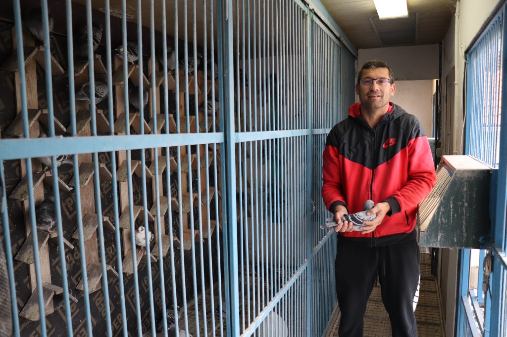 O nosso entrevistado Bruno Borda d`Agua, o líder da equipa com a campeã no corredor frontal dos pombais de competição.