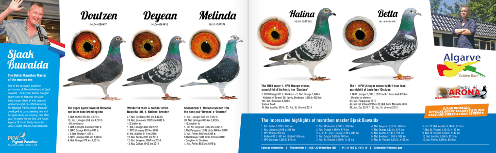 Na última década, o clube de pombos em que corro, e onde corro desde os 10 anos de idade, é frequentado principalmente por columbofilos de longa distância e por mais um punhado de amadores que não jogam os pombos além de corridas com 700 km. O mesmo de passa na cidade vizinha que també, tem um clube de columbofilia. Não era assim nos anos 80, quando cresci no desporto. A especialização e o sucesso dos clubmen na longa distância fizeram com que a principal área em que vivemos se desviasse do programa normal de corrida (100-700km) para distâncias superiores. Mesmo em nossa província, esses dois clubes são únicos, pois quase todos os clubes têm mais columbofilos que fazem o calendario normal do que homens de longa distância, que em geral talvez representem dez por cento de toda a população de columbofilia na Holanda. Além disso, quando você dá uma olhada no mapa da nossa província, você poderia ver porque nós, no sudoeste da província, situados no lado sul e oeste ao redor do grande IJssellake, mudamos principalmente para as corridas de distância. Principalmente os ventos de oeste mais a distância extra de vôo não são realmente motivadores quando você pode encontrar os vencedores da nossa área na velocidade, nas últimas páginas do resultado provincial. No entanto, desde que você possa desfrutar do Desporto, tudo bem para mim. A maioria dos pombos que eu conheço não é “material para longas distâncias”, já que você realmente precisa de paciência, paciência, paciência e ser capaz de levar uma surra da natureza. Quando falamos de corridas de longa distância aqui, a corrida mais curta é de 840 km de Limoges e a mais longa de Barcelona de 1330 km. Para a maioria dos países, a diferença entre essas duas raças é o máximo que elas vão. A Holanda tem uma longa história de corridas de longa distância ou corridas de longa distância extremas, se você quiser. Claro que começou bem mais cedo na Bélgica, com corridas profundas na Espanha como de Valladolid, Madrid, Bilbao, Roma na Itália e até mesmo do norte da África. Como você pode esperar, não foram muitas as asas que conseguiram chegar em casa e depois de um tempo, e é claro que as guerras na Europa, esses experimentos não tiveram continuidade. Restou apenas uma corrida da Espanha e é de longe a corrida de longa distância mais famosa do mundo. Na verdade, em qualquer país, em todas as línguas da columbofilia, as pessoas conhecem a corrida internacional de Barcelona. É como a busca pelo Santo Graal, uma peregrinação ou mesmo uma cruzada quando você está encestando seus favoritos para o confronto com os toplofts de toda a Europa Ocidental. Correr com meu pai na minha adolescência, gostava e ainda gosto de todas as corridas, mas quando se tratava de corridas de longa distância meu verdadeiro interesse estava bem desperto. Ainda assim, no máximo 700 quilômetros, e minhas corridas favoritas foram as realmente difíceis, e ainda me lembro de corridas lendárias do início dos anos 80. Só porque eram difíceis, principalmente por causa do mau tempo. Não havia rainraidar e ninguém nunca ouviu falar de frentes meteorológicas … Na minha bicicleta visitando membros do clube para ouvir se eles tinham algum retorno. Chame isso de estranho, mas quanto mais difícil a corrida, mais eu gosto. Meu interesse estava lá. Além disso, em nosso jornal nacional, os vencedores nacionais receberam os holofotes reais. Aqueles onde estavam os artigos que eu esperava, lendo tudo sobre eles. Eu estava indo para uma corrida de longa distância extrema, encaixada no meu personagem, o que você precisa para este jogo. A corrida provincial de Tours 704km com liberação à tarde quando eu tinha 10 anos foi minha primeira corrida noturna, com mais de uma história. Contarei mais sobre isso na próxima vez.