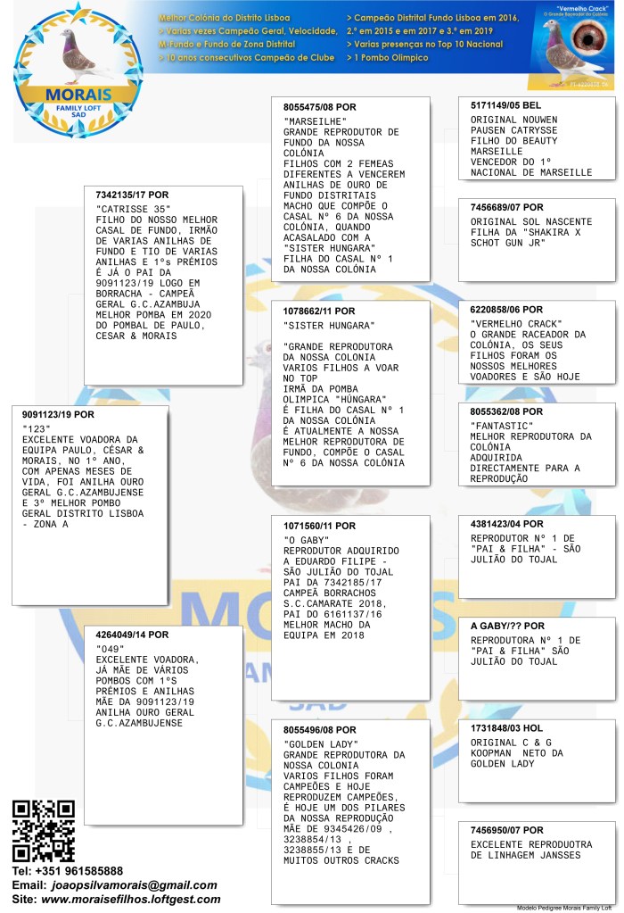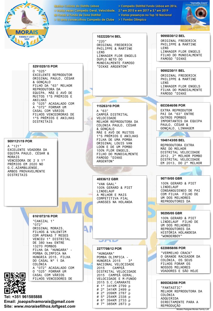 Voltamos ao velho ditado, que nos diz que a sorte dá muito trabalho… este conjunto de columbofilos tem desenvolvido uma equipa ganhadora em Camarate e outra na Azambuja… no dia de hoje apresentamos duas das pombas que mais contribuíram para o titulo distrital de yearlings na Zona A em 2020, duas pombas de ataque, com a particularidade de trazermos ao conhecimento de todos também a sua árvore genealógica: o seu Pedigree… falamos e ouvimos muito nos últimos anos que o caminho com sucesso na columbofilia… é aquele que dê ênfase ao pombo em detrimento do columbofilo…pois caro leitor é essa também a nossa opinião…dar o maior destaque possível ao atleta e à sua árvore genealógica… pois aqui temos duas das estrelas da companhia para apreciar…
