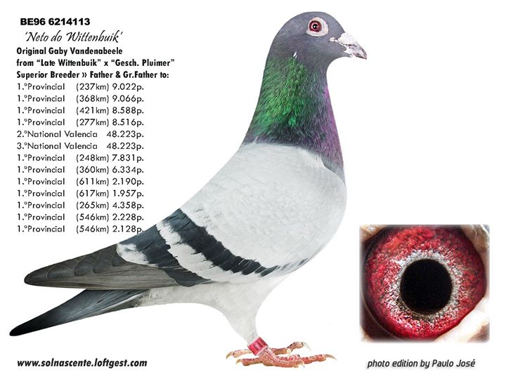 Este pombo que apresentamos de seguida… quase que apetece perguntar se algum de vocês conhece melhor?… é conhecido pelo “113”, tem filhos, netos, bisnetos, trinetos a vencerem corridas, anilhas e campeonatos ao mais alto nível… orgulhamos de conhecer muitas das grandes colónias nacionais e muitas no estrangeiro , mas um fenómeno assim é realmente fantástico… muitos pombais que já visitamos e outros apenas temos conhecimento por relato… mas inúmeras colónias assentam os seus melhores resultados em descendentes deste macho… parabéns… um super pombo que assenta muito bem nesta que é também ela uma super equipa.