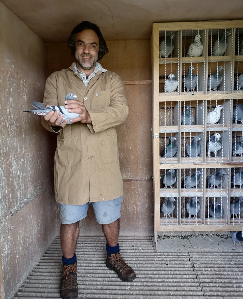 Falamos agora um pouco da historia e linhagem desta pomba ganhadora: a sua mãe é uma Grondelars consanguinidade do grande casal do Dr. Quadrado Filipe, tio do nosso entrevistado…uns pombos adquiridos na Supra e que deram inúmeros voadores de destaque. O pai é Van Loon, um macho de guia Branca que veio para a herdade da Janela emprestado por pelo Sr. José Luís de Nafarros em 2016 e devolvido no ano seguinte. O pombo despertou paixões e volta por empréstimo mais tarde… até determinado momento foi ficando nessa condição mas entretanto acaba por ser feito um acordo de cavalheiros, o pombo passa a estar definitivo neste pombal à troca de um cão puro Tekel e todos ficaram satisfeitos. Este cruzamento bateu logo certo… a fêmea deste casal já tinha dado excelentes referencias com outros machos e o macho por sinal também já tinha dados bons filhos e netos metidos a outras linhagens…agora um com o outro a senda continua…