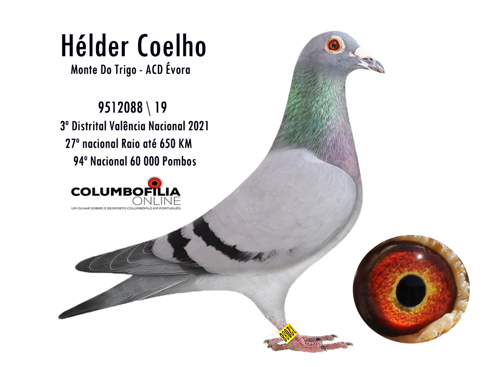 Um atleta voado por Hélder Coelho, mas a sua origem é oriunda do pombal de João Duarte de Évora, chegou em borracho a Monte do Trigo por oferta. O João anualmente tem oferecido inúmeros borrachos para esta colectividade e para os seus amigos, nomeadamente para aqueles que estão no inicio de caminhada para serem columbofilos. O pai do “088” é resultado de um cruzamento entre um pombo da dupla Caldeira & Morais do Crato e uma pomba Sol Nascente da linha do “231” Flor Engels, enquanto a mãe é uma pomba Espanhola, que entrou num concurso de Valência em Évora, foi solta uma serie de vezes e nunca saiu em direcção a casa, entretanto comunicada e nunca reclamada… foi treinada e no ano seguinte fez a campanha em nome do João, veio a revelar se uma excelente voadora de Fundo.