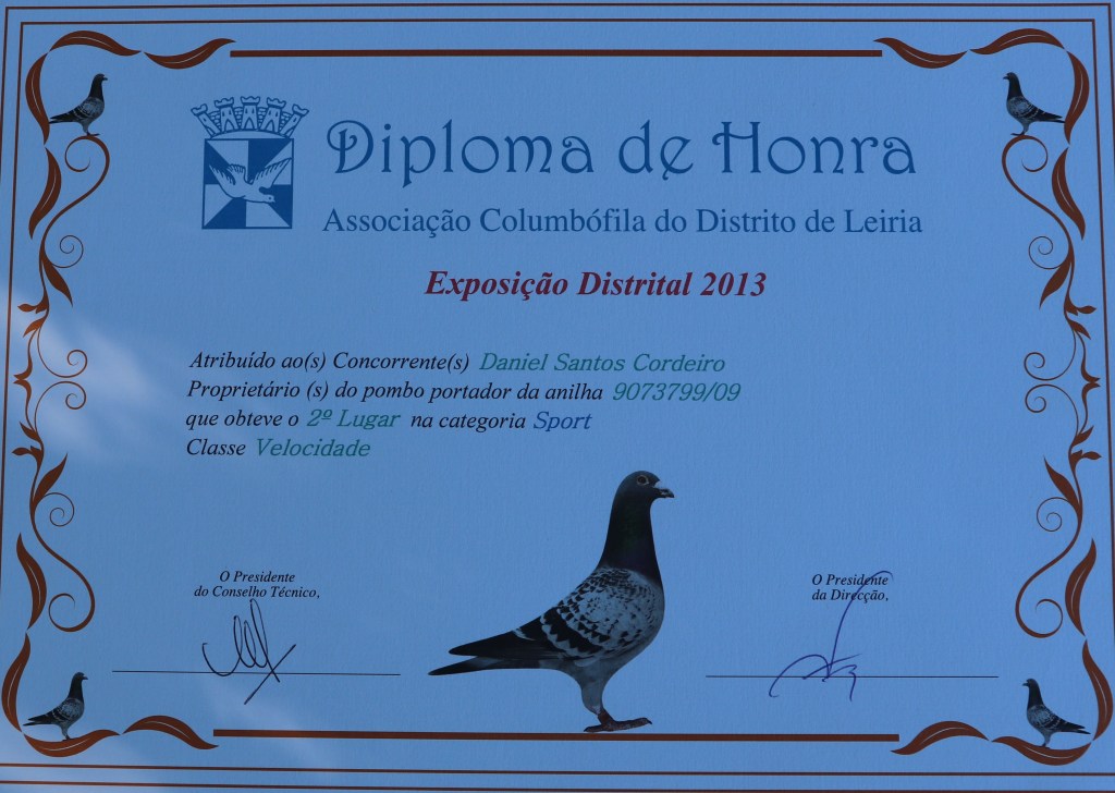 O melhor pombo de sempre na sua colónia, o “Pena” tem de uma historia caricata: determinada altura aparece um macho perdido de concurso dentro do seu pombal, entretanto é comunicado à Federação e constata que é de um senhor de Penafiel, contactam-se pelo telefone e combinam a entrega do macho aquando da vinda do dono do mesmo para descarregar colchoes numa empresa bem perto de Porto Mós, não longe do pombal…até ao dia de hoje ninguém apareceu nem mais houve qualquer contacto… o pombo foi ficando lá por casa.