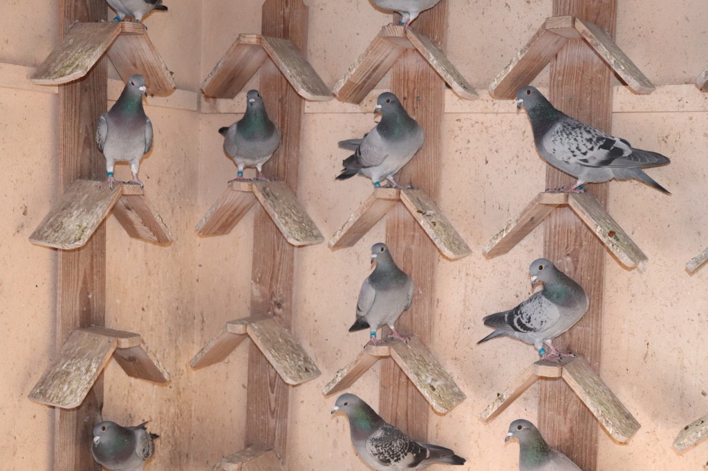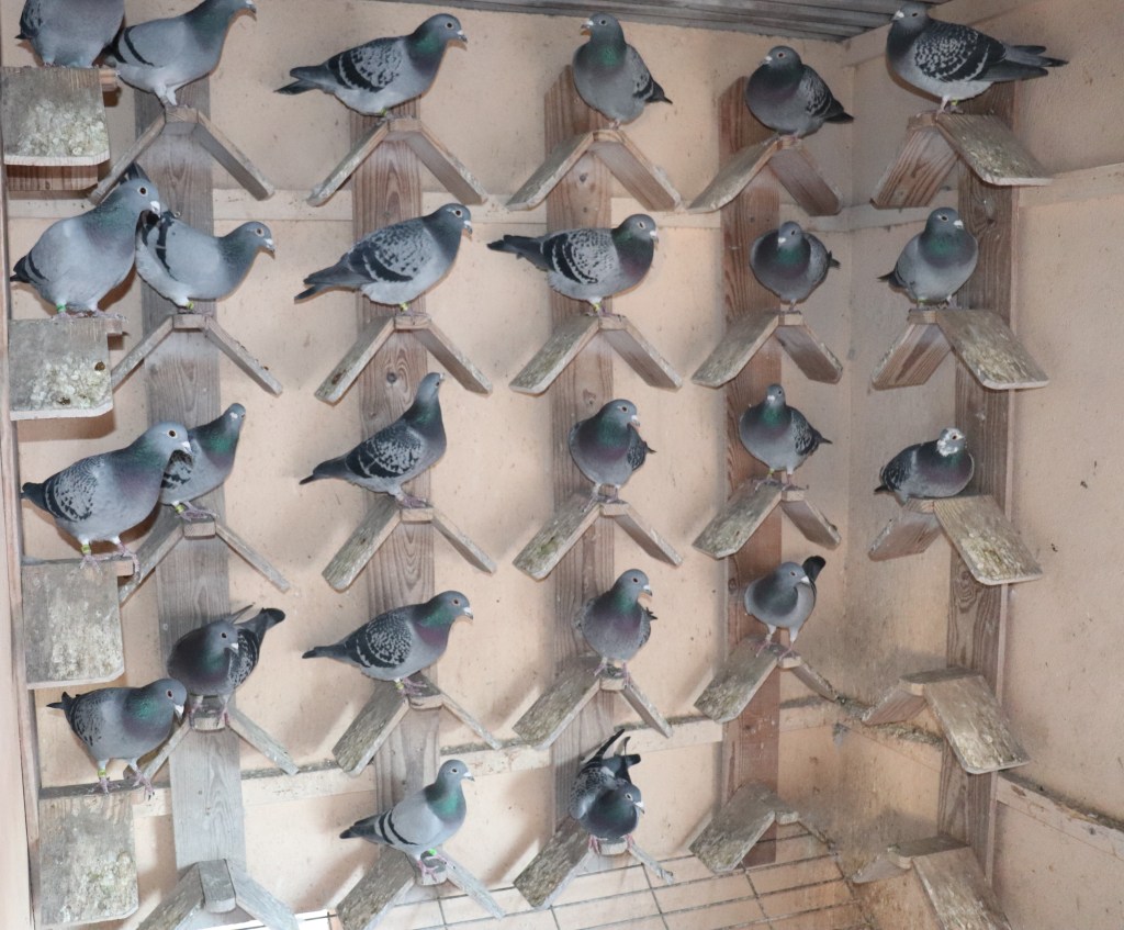 Costuma ter 6 casais de reprodutores, este ano esta com excesso de pombos, uma vez que são 8 machos reprodutores e 7 fêmeas… não é o numero que conta… mas a qualidade… neste grupo de pombos apenas encontramos pombos vencedores de primeiros prémios de Barcelona. Não muda o pensamento nem a forma de proceder, enquanto sentir que esta na frente no que toca a estes concursos… o distrito fechou com 13 pombos dos quais 5 foram dele, estamos a falar da edição de 2021no Barcelona.
