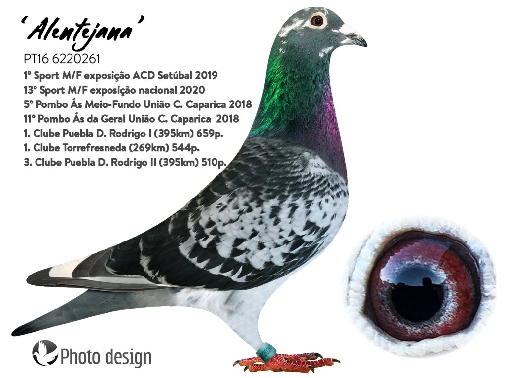 Os pombos actuais resultam em ultima analise, portanto estamos a falar dos pais das 5 magnificas e de alguns dos melhores reprodutores dos últimos anos, de um casal, que podemos dizer que é a base neste momento, uma fêmea do Palma da Charneca, com o macho velho do Carlos antigo sócio do Carrapiço, um pombo que se destacou em provas de fundo. A estes pombos podemos juntar alguns reprodutores de Pedro José , dos seus Van Loons e duas fêmeas da linha da sua “Sony Blue”. Referenciamos também uma pomba Belga adquirida num leilão Great Derby que tem reproduzido muito bem, uma pomba de Adrien Meribel.
