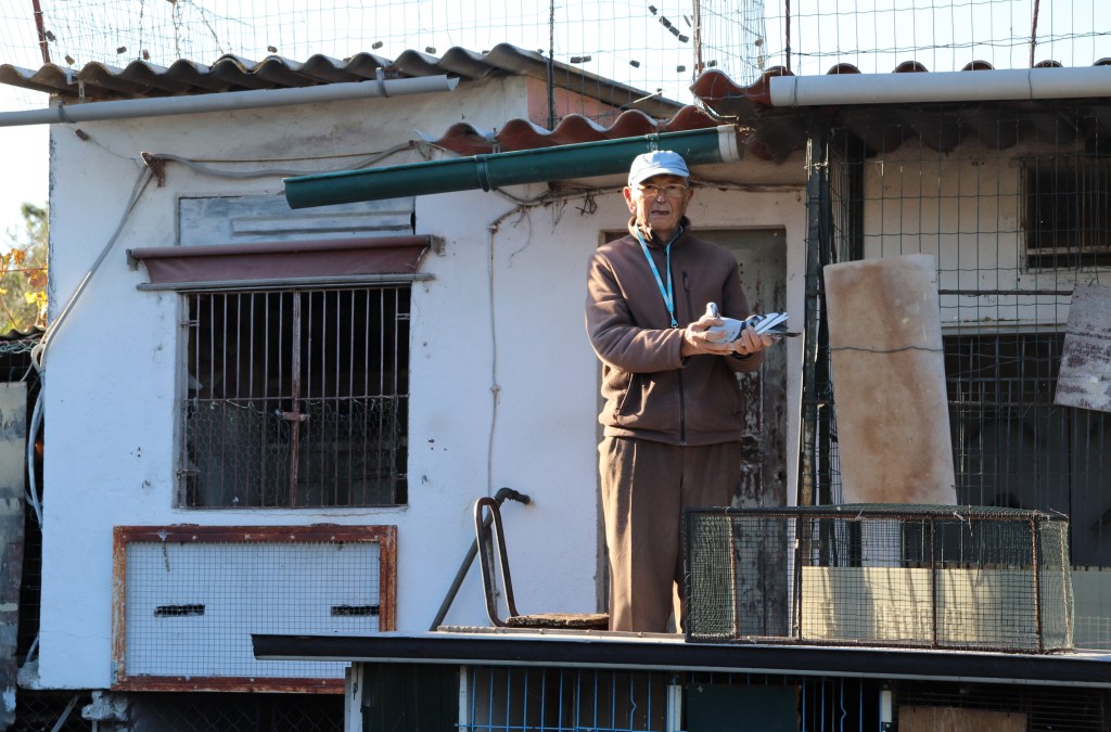 Conhecemos um verdadeiro competidor… com idade nas pernas, mas com uma jovialidade fenomenal. Um homem talhado para competir, inicia o processo de aprendizagem dos seus jovens pombos no cedo e no cedo iniciam as viagens em competição, não guarda atletas sem serem bem experimentados, logo em tenra idade e sempre que pode para alem da competição semanal os seus pombos são sujeitos a um treino semanal… não se descansa nesta casa… a não ser que alguns atletas regressam com sinais de fadiga de um concurso maior ou de maior dureza e ai têm direito a repousar.
