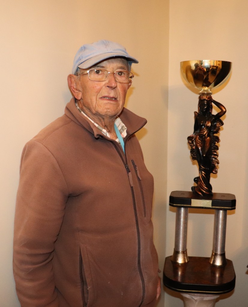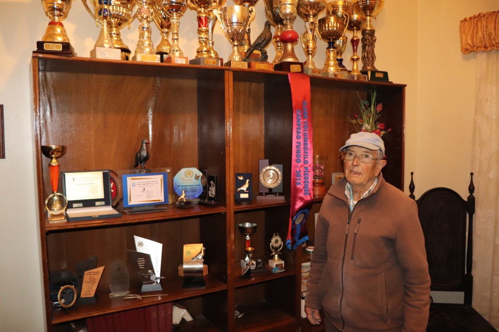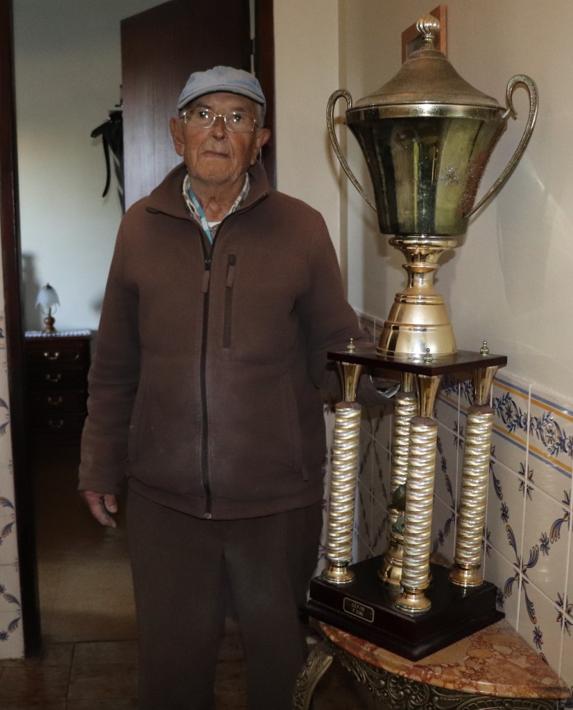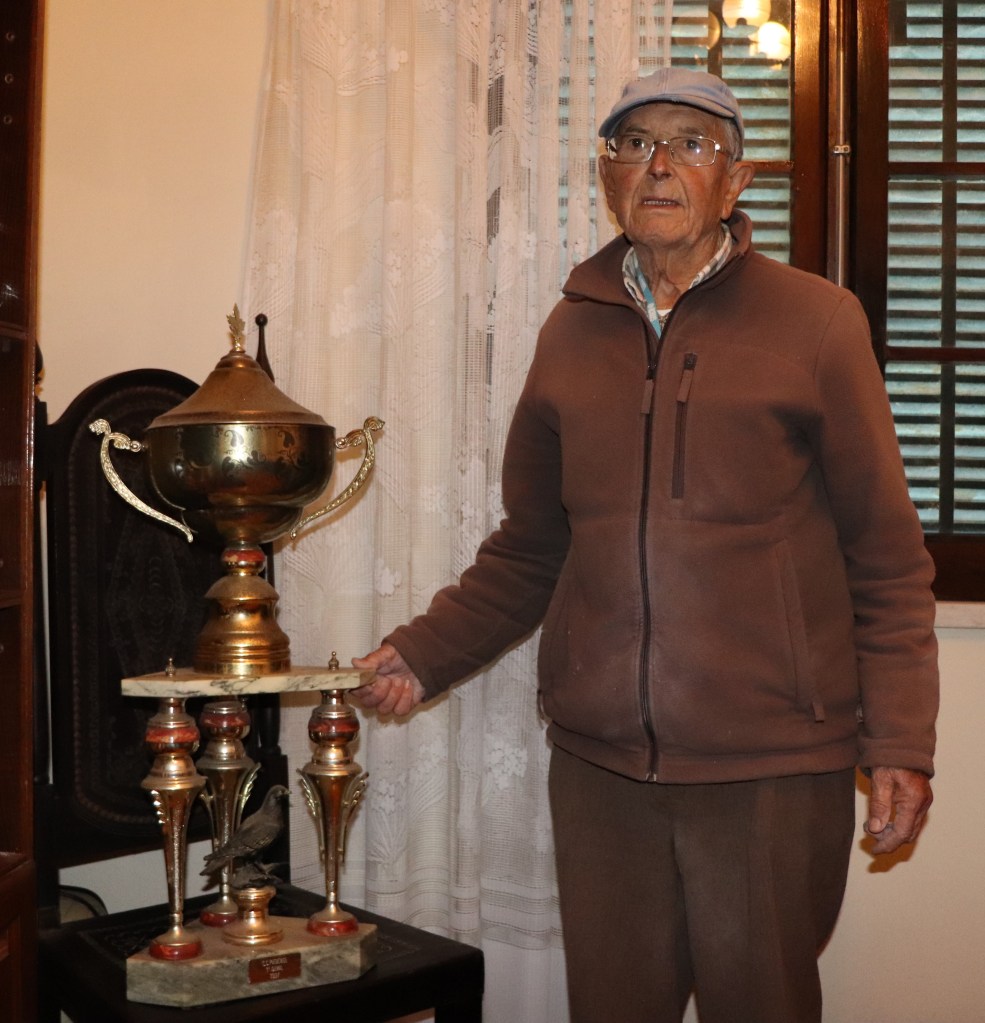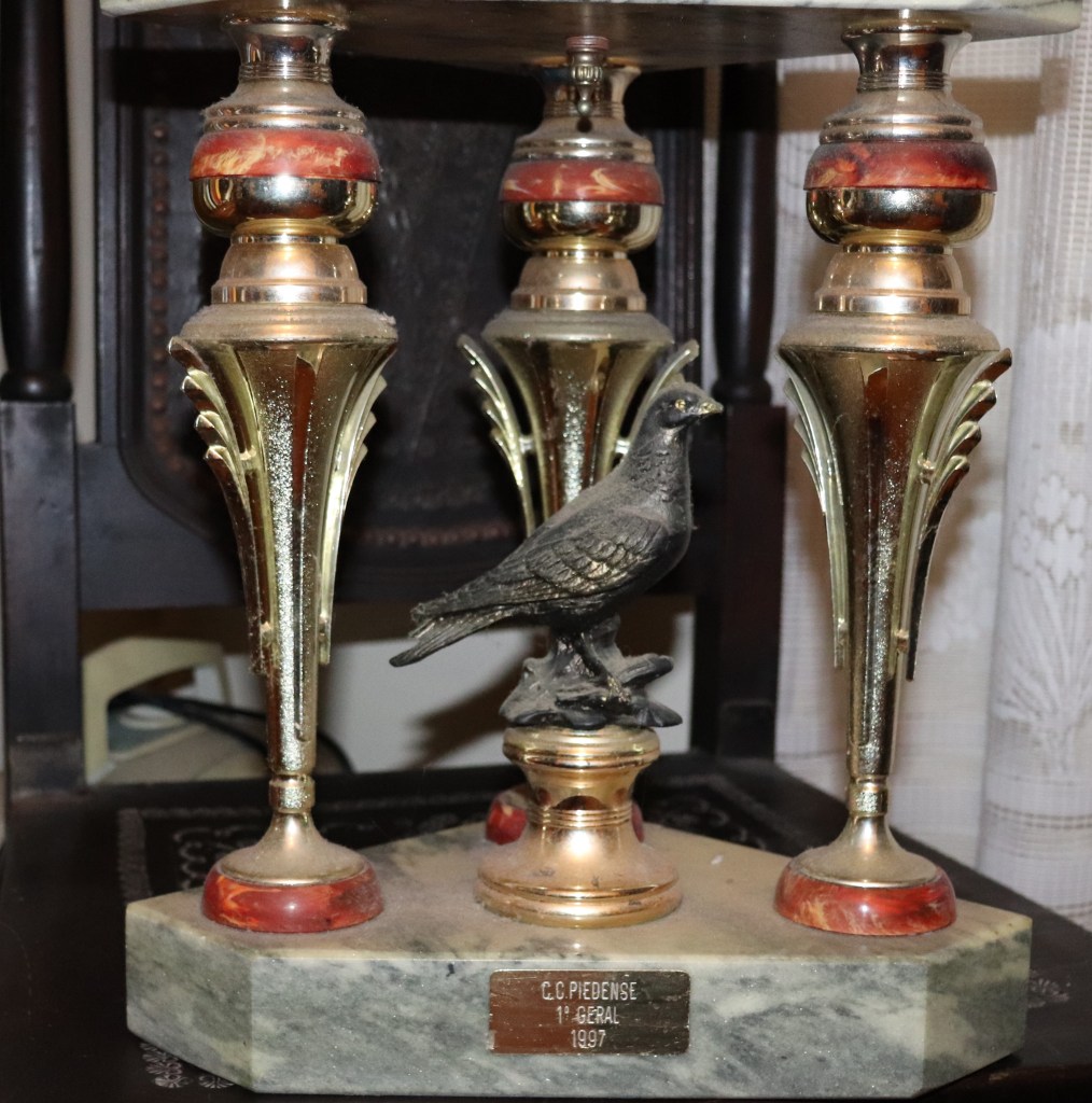Podemos encontrar na residência no nosso amigo Alberto Carrapiço, uma historia de vida contada em troféus… na foto em baixo uma das faixas mais adoradas, a de campeão de Fundo no grande clube Piedense. Venceu inúmeras vezes os vários campeonatos locais… e chegou a ser campeão Distrital de Meio fundo. Uma vida de triunfos, muita dedicação e um amor incondicional ao pombo correio e à columbofilia.