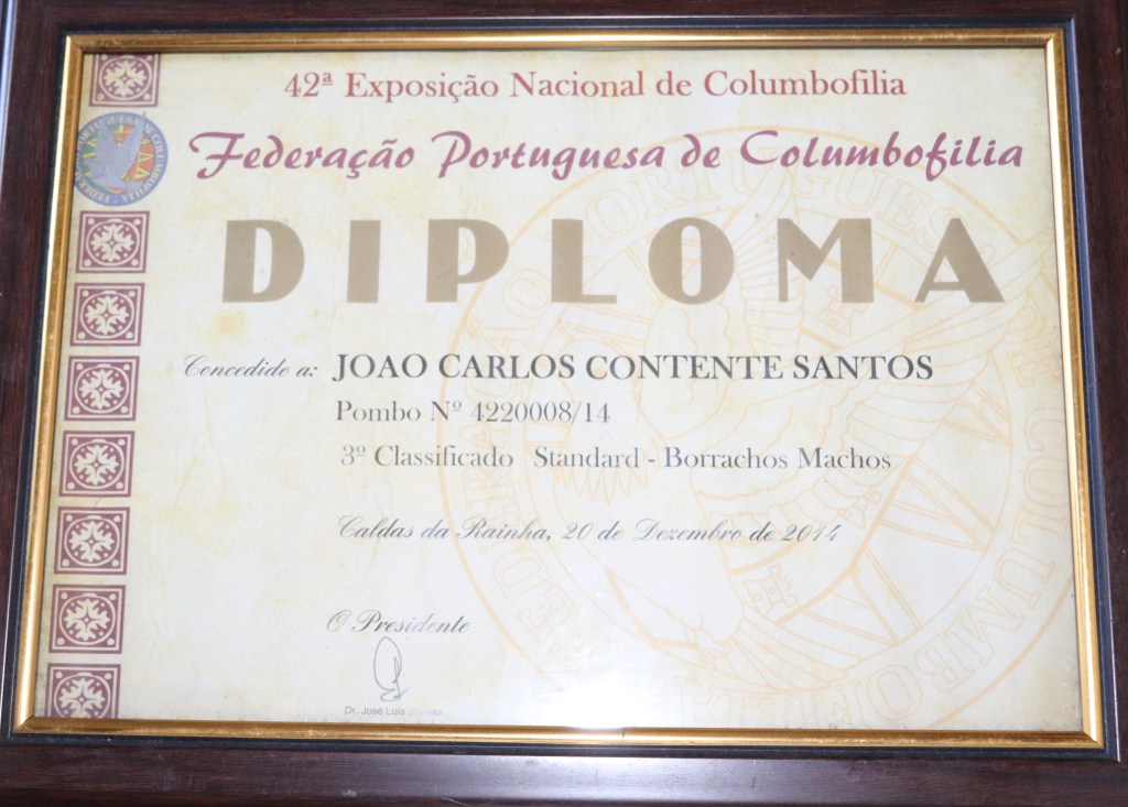 O Standart esta em grande mudança no País e no Mundo, os pombos que venciam as varias classes, não estão hoje em segundo plano, simplesmente vão desaparecer, e por esse motivo todos os campeões de João Santos foram oferecidos e o trabalho esta a ser desenvolvido de raiz. Anos houve em que o pombo quanto maior melhor… isso acabou… hoje o pombo de standart é o pombo do Sport…temos de procurar dentro dos nossos pombais, nos pombos que nos ganham as corridas, quais deles apresentam as características físicas que procurávamos nos outros… uma boa asa, expressão, equilíbrio, estrutura, postura…etc… vai existir uma grande diferença… em anos anteriores os pombos chegavam a estar alguns meses sem virem à rua só em preparação para a exposição, hoje em dia, um bom voador não pode ficar parado, tem de voar \ treinar. Podemos e devemos perder a ideia de que um pombo que vai à exposição no ano seguinte deixa de ganhar, é falso, e podemos dar o exemplo de uma fêmea do João que num ano foi campeã na classe de fundo e no ano seguinte foi anilha de ouro de campanha na Caldense.