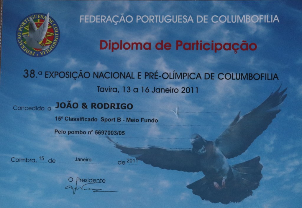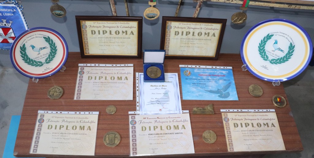O João oferece um pombo ao Figueiredo, este atleta tinha alcançado o 11º lugar na exposição distrital de Leiria, era um Pigarço, na opinião do columbofilo apesar dessa classificação era o melhor do pombal enquanto reprodutor… esse pombo saiu para Santarém na condição de ser acasalado e no ano seguinte receber dois filhos dele… e assim foi… nasceram 5 do casal feito pelo Figueiredo, os do João Santos em Leiria ganham 1º e 2º e em Santarem os do Figueiredo fazem 1º na classe de machos e 1º e 2º em fêmeas… a nível nacional… o Figueiredo faz 2º e 3º e o João 4º e 5º… e assim surge uma geração de campeões… mais tarde veio uma outra fêmea para as Caldas da Rainha, cruzada a um macho do Edgar surgem estes Pigarços que apresentamos nesta entrevista. Tiago Dória também foi uma pessoa importante, com quem trocou alguns pombos com bons resultados. Nunca se viram como adversários, mas sempre como parceiros no desenvolvimento da equipa de cada um.