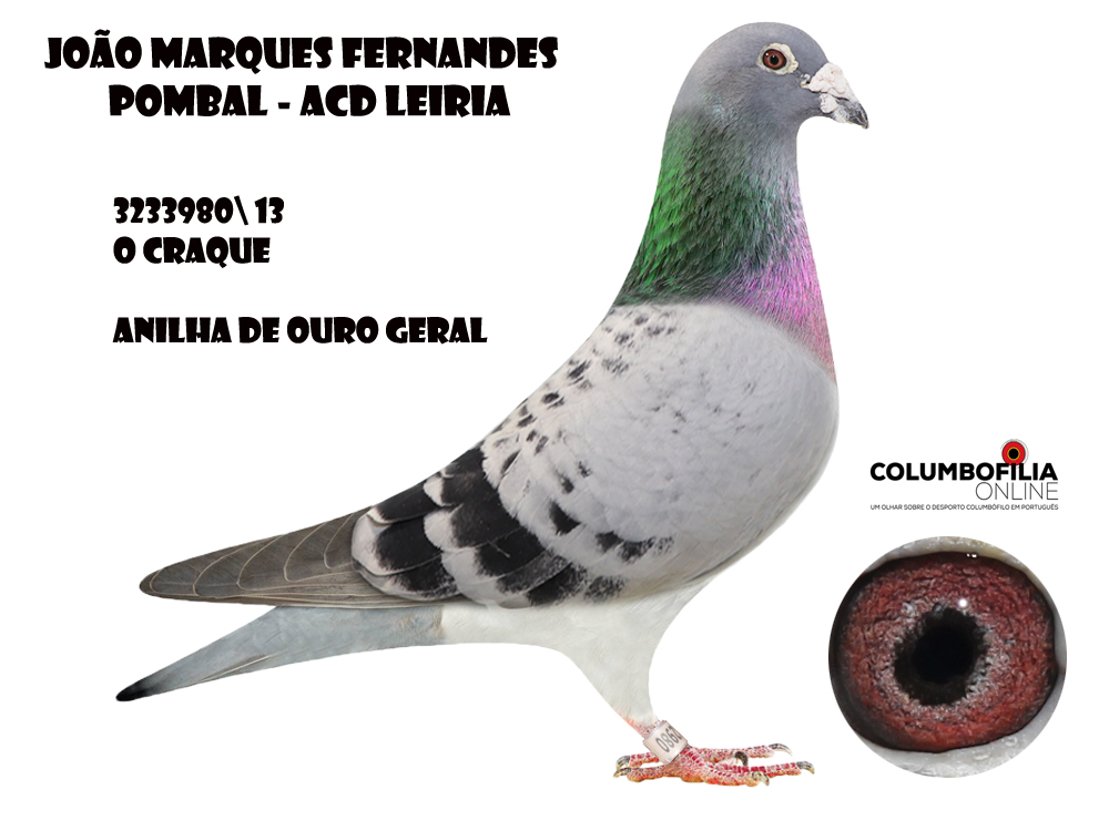 O “Velhinho” era filho de um macho Holandês que foi apanhado num barco e oferecido a José Sintra de Pombal e a mãe era uma fêmea oriunda de Fafe, de um vizinho columbofilo do irmão de João Marques… era um columbofilo assiduamente visitado pelo nosso entrevistado, e com o seu falecimento, o seu filho chamou lá os amigos para entregar os pombos. A pomba tinha uma asa e um olho formidável, apesar de aparentar alguns defeitos físicos. Do casal nasceram 3 filhos, entre eles nasceu o “Velhinho”.