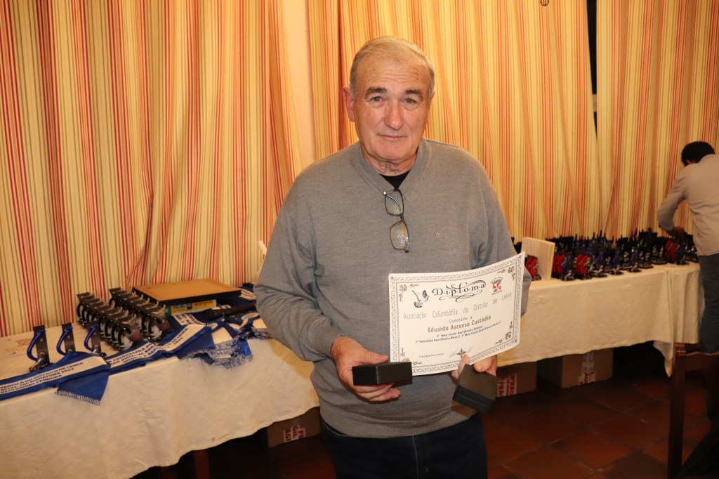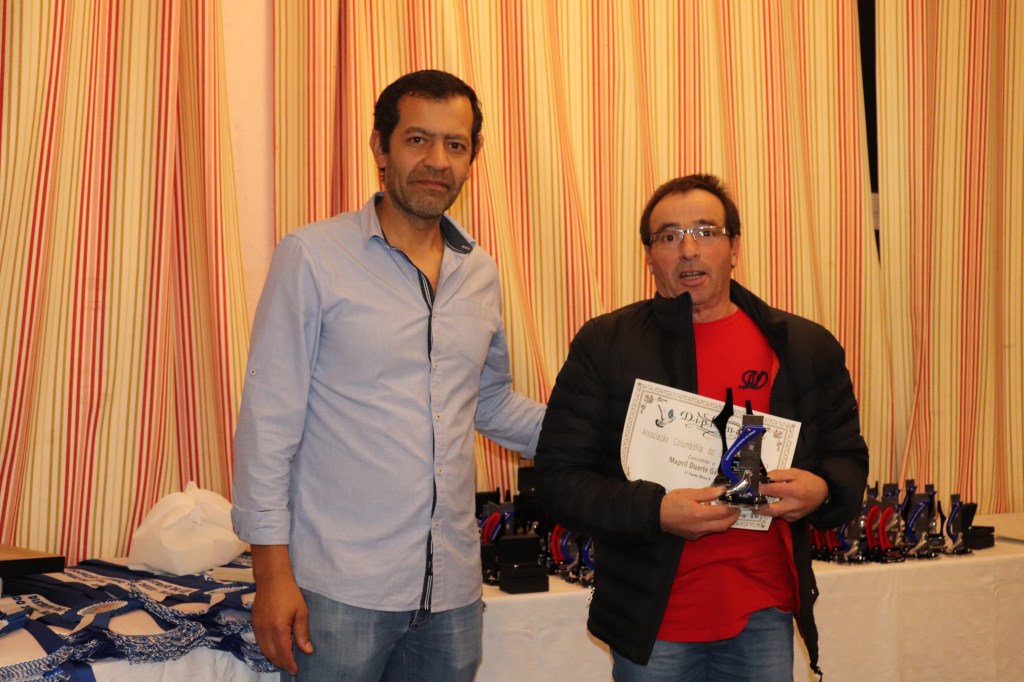 Antes da normal distribuição de prémios foi homenageado Luís Fialho elemento integrante do concelho Desportivo da Associação, pela sua incansável entrega e disponibilidade para trabalhar em prol da columbofilia. Tem sido sempre o delegado do campeonato de borrachos e nunca aceita nada em troca. Sempre que aparece uma necessidade está sempre disponível. De imediato se iniciou a entrega de prémios que contou com a presença e participação de Paulo Rodrigues. Foi dada também uma palavra de agradecimento aos elementos da ACD Évora Francisco Ramalho presidente da direção e Hugo Cruz, presidente do concelho desportivo que viajaram do Alentejo para apoiar os seus camaradas.