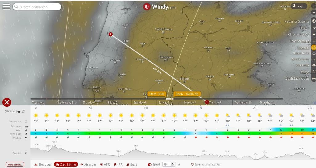 Caros amigos, companheiros e leitores, temos o privilegio de anunciar que temos, à vossa disposição, clicando apenas no Menu onde diz previsões, um aconselhamentos descritivo para cada fim de semana Columbófilo e ainda no lado direito do ecrã uma pequena janela que diz detalhes…clicando ai será direccionado para uma ferramenta espectacular. Pode ver ventos, chuva, temperatura, humidade, nuvens etc etc ao pormenor …experimente…vai ficar encantado…uma inovação na meteorologia europeia ligada à columbofilia… se colocar o rato sob a tabela das condições meteorológicas pode ver o local onde a cada hora os pombos deverão estar a passar…pode colocar a velocidade estimada e prever em cada hora onde estão os pombos e a previsão da sua hora de chegada…pode também observar o relevo em cada concurso…e as montanhas e vales que os pombos vão fazer…é ou não espectacular?